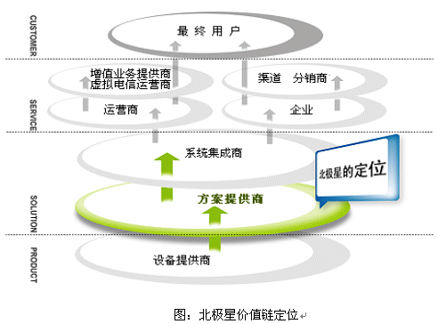 北極星軟件創(chuàng)建于1997年。作為專業(yè)的VoIP增值業(yè)務(wù)解決方案供應(yīng)商,北極星軟件秉承“溝通世界(Connecting the world)”的理念,致力于以新技術(shù)推動(dòng)人和信息的溝通,為電信運(yùn)營(yíng)商、虛擬電信運(yùn)營(yíng)商、電信增值業(yè)務(wù)運(yùn)營(yíng)商和廣大中小企業(yè)提供電信級(jí)的VoIP增值方案。