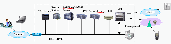 Web800電信級解決方案為電信運(yùn)營商以ASP的模式運(yùn)營800業(yè)務(wù)提供了良好的解決途徑。該方案要求電信運(yùn)營商安裝Web800 Server、媒體網(wǎng)關(guān)、數(shù)據(jù)庫等系統(tǒng)核心部件、AAA Server,挑選IP IVR等作為可選部件。Web800無需更新原有的系統(tǒng)設(shè)施,就可與傳統(tǒng)的800號業(yè)務(wù)進(jìn)行融合;系統(tǒng)在完成遠(yuǎn)程的IP網(wǎng)絡(luò)傳輸過程后,經(jīng)過IP網(wǎng)關(guān),即接入原有傳統(tǒng)800系統(tǒng),將遠(yuǎn)程呼叫擴(kuò)展為基于Web的呼叫方式,同時(shí)又保護(hù)電信運(yùn)營商的原有投資,使之延續(xù)。 該方案具有電信級的高性能指標(biāo):同時(shí)在線最大人數(shù)為10000人/臺;語音質(zhì)量介于固定電話和移動電話之間;服務(wù)器無故障運(yùn)行時(shí)間<5天/年等。系統(tǒng)還具有專門的運(yùn)營商管理功能,通過Web頁面即可進(jìn)行系統(tǒng)管理、呼叫記錄統(tǒng)計(jì)等。