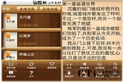 只要將捷通華聲出品的聽書軟件安裝在Android1.6以上系統(tǒng)的智能手機中,即可隨心暢讀,捷通聽書是捷通華聲人機交互(HCI)技術的創(chuàng)新之作,它運用嵌入式語音合成技術,無需人工進行預置錄音,無論什么文體,都可進行順暢的海量閱讀,這樣的海量閱讀并不會給手機的存儲空間帶來負擔,現(xiàn)在就可在官網(wǎng)中http://www.hcicloud.com/xiazai.asp?id=2&classtitle=手機伴侶&clid=3 下載捷通TTS組件,只要電子書的格式為純文本文件TXT格式,便可順利進行語音朗讀。您可以選擇男聲、女聲和寶寶聲,音質(zhì)清晰可媲美真人發(fā)聲,聽書已不再成為難事。捷通聽書軟件外觀整體設計古樸典雅,仿佛真能聞到書香的氣息,這樣的視聽氛圍會立刻帶你進入到聽書的境界中。獨特的翻頁模式更具人性化的設計,讓人機交互更像真正意義上的翻頁讀書,無論是聽書,還是看書,都給人帶來美好的體驗。另外,捷通華聲的語音合成技術還可提供多種音色的備選方案,可根據(jù)用戶的需求進行選用,同時支持英語、日語、俄語、德語、意大利語等多個語種的語音合成技術,為用戶提供真正多方位的服務。近日,捷通聽書還在BTV《在線E起來》欄目中精彩亮相,節(jié)目中的多項測評使這款軟件表現(xiàn)不俗,捷通聽書軟件再次成為智能手機軟件應用中的新亮點。