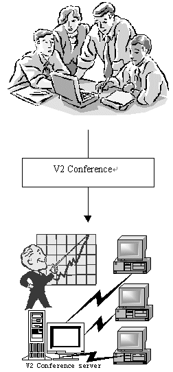 I P視頻會(huì)議,是一種利用普通的PC機(jī)加上簡(jiǎn)單的視頻攝像頭和耳機(jī)麥克風(fēng),通過(guò)Internet或者是局域網(wǎng)進(jìn)行傳輸,以低廉的成本傳送數(shù)據(jù)、視頻和音頻信號(hào)的新型會(huì)議方式。V2公司的視頻會(huì)議產(chǎn)品V2 Conference 就采用了這種技術(shù)先進(jìn)而且經(jīng)濟(jì)合算的方式,與傳統(tǒng)的需要專用的服務(wù)器和硬件支持的視頻會(huì)議相比,該系統(tǒng)可以使您無(wú)需進(jìn)行成本高昂的投入,就實(shí)現(xiàn)高質(zhì)量、高可靠性的音視頻通訊。同時(shí),為了方便您的管理,V2 Conference提供了會(huì)議管理的功能,使您足不出戶,就可以掌控全局。