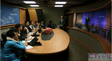 Australia”以外,畫面所呈現(xiàn)的場(chǎng)景與我們的會(huì)議室完全一樣。此時(shí),在座的體驗(yàn)者都露出驚訝的表情,并開始互致問(wèn)好。讓我意外的是:當(dāng)人們開始自我介紹時(shí),大家的目光都齊刷刷的投向了發(fā)言者,而且就像坐在同一間會(huì)議室,根本不用刻意提高嗓門講話。
