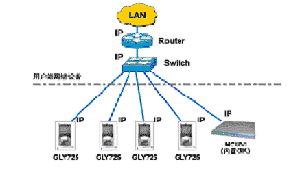 在這幾個不同的辦公地點的會議室分別配置一臺視頻會議終端設(shè)備,在主會議室中再配置一臺多點控制單元MCU,即可實現(xiàn)商業(yè)用戶在同城的幾個辦公室之間進(jìn)行視頻通信。該方案的組網(wǎng)非常簡單,不需要企業(yè)租用電信的線路,也不需要多購買其他網(wǎng)絡(luò)設(shè)備,只需為每臺設(shè)備分配私有的IP地址,就能實現(xiàn)視頻通信。