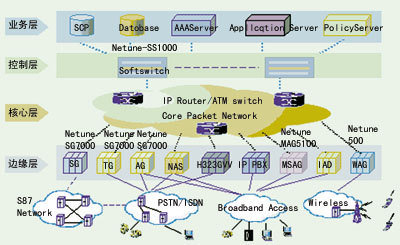 Softswitch體系結(jié)構(gòu)將下一代網(wǎng)絡(luò)共劃分為四層:邊緣接入層、核心傳送層、控制層和業(yè)務(wù)應(yīng)用層,各層之間采用明確的標(biāo)準(zhǔn)化接口(而不是各廠家自己所設(shè)計的專用接口)。Softswitch提供綜合接入能力,支持種類眾多的終端設(shè)備,可以完成與現(xiàn)有PSTN/ISDN、PLMN、IN和Internet網(wǎng)的互通,使用戶完全屏蔽網(wǎng)絡(luò)的變革。
