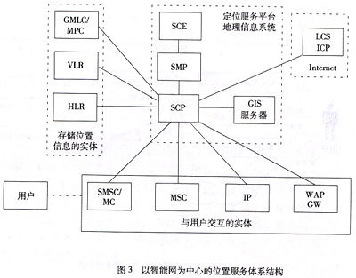 在GSM網絡和CDMA網絡中均有LCS的規(guī)范。在GSM的LCS網絡參考模型中,智能網的業(yè)務控制點(SCP)通過與關口移動位置中心(GMLC)之間具有標準的Lc接口,可以獲得移動終端的位置信息,而在CDMA網絡中,SCP與移動位置中心(MPC)之間也具有標準的L4接口,可以實現(xiàn)類似功能。