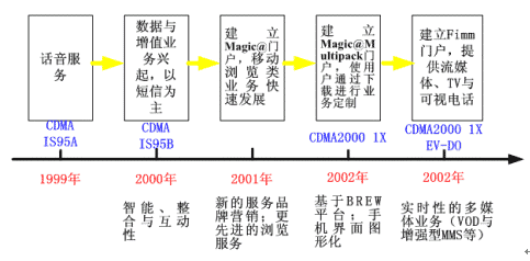 通過與手機芯片廠商密切合作并依靠韓國終端廠商較強的制造能力,KTF較早地解決了CDMA2000 1X手機與EV-DO手機的基本性能問題(性能對比見表3),不僅抵消了用戶的使用顧慮,而且也為不斷推出新的高速數(shù)據(jù)與增值業(yè)務奠定了較好的終端應用基礎(chǔ)。