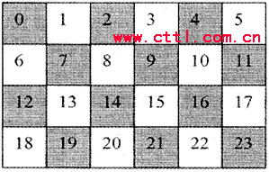 如圖3所示,陰影部分宏塊屬于片組0,白色部分屬于片組1。假設(shè)片組O在傳輸過程中丟失,由于丟失宏塊的相鄰宏塊都屬于片組1,這樣差錯(cuò)恢復(fù)工具就會(huì)有更多的可利用信息來(lái)恢復(fù)丟失片的數(shù)據(jù)。