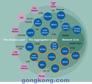 ATCA正在被廣泛應(yīng)用于無(wú)線網(wǎng),見(jiàn)圖2中橙色園環(huán)部分,這是由市場(chǎng)對(duì)成本效益,快速部署方案的需求驅(qū)動(dòng)的。服務(wù)提供商和TEM均認(rèn)識(shí)到:用戶愿意為3G網(wǎng)絡(luò)的先進(jìn)功能所付出的只能是少量的附加費(fèi),因此從2G/2.5G向3G轉(zhuǎn)換必須以盡可能低的成本和盡可能靈活的方案來(lái)實(shí)施,許多TEM已經(jīng)將ATCA看成滿足快速發(fā)展的無(wú)線市場(chǎng)需求的唯一技術(shù)。若基于雙星千兆以太網(wǎng)交換互連,ATCA的性能已經(jīng)很好的滿足無(wú)線網(wǎng)要求,因?yàn)檫@些網(wǎng)絡(luò)實(shí)質(zhì)上是低帶寬而高運(yùn)算密度的網(wǎng)絡(luò),對(duì)于實(shí)時(shí)敏感的語(yǔ)音應(yīng)用而言,千兆以太網(wǎng)的高速度已經(jīng)消除了延遲的問(wèn)題。
