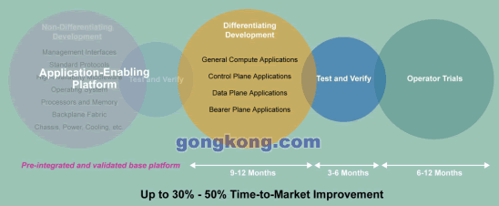 摩托羅拉將這種預(yù)集成并驗(yàn)證的基礎(chǔ)平臺(tái)稱之為面向應(yīng)用的平臺(tái),采用這個(gè)方式可以極大的加快進(jìn)入市場(chǎng)的速度,使TEM專注于開(kāi)發(fā)自己產(chǎn)品的差異化功能與內(nèi)容;跇(biāo)準(zhǔn)的平臺(tái)同時(shí)具有豐富的核心能力,從硬件,OS到高可用中間件與管理接口,它不是為單一應(yīng)用而設(shè)計(jì),而是為廣闊市場(chǎng)準(zhǔn)備的通用平臺(tái)。