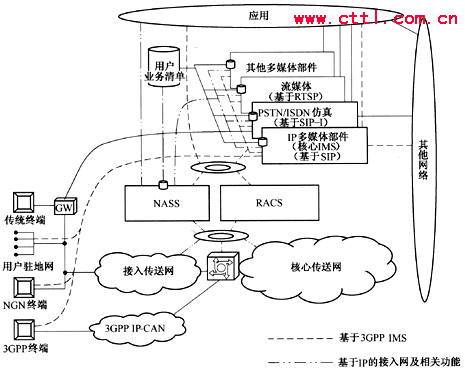 在標(biāo)準(zhǔn)方面,基于SIP的3GPP IMS是目前比較完善的體系結(jié)構(gòu),ETSI、ITU-T等已經(jīng)有在固定領(lǐng)域應(yīng)用IMS架構(gòu)的明確傾向,以后的固定NGN的多媒體域網(wǎng)絡(luò)架構(gòu)將可能基于3GPP IMS發(fā)展。同時(shí),ITU-T、ETSI所定義的NGN業(yè)務(wù)需求包括了通信、信息、娛樂(lè)等業(yè)務(wù),移動(dòng)性已經(jīng)成為固定NGN的一個(gè)重要需求,NGN將在IMS架構(gòu)基礎(chǔ)上擴(kuò)展支持固定接入和其他融合業(yè)務(wù)。
