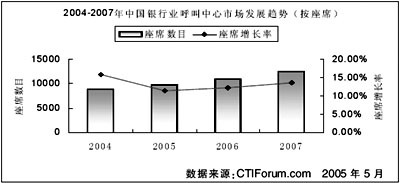 根據CTI論壇預測,到2007年,銀行業(yè)呼叫中心的座席總數將達到12500個,累計投資額將達到70億元。2005年到2007年的投資額復合年平均增長率為14.86%。未來,銀行業(yè)在未來三年內的發(fā)展穩(wěn)定,并以較高速度增長。