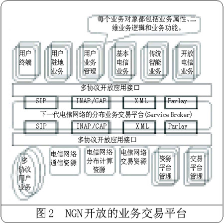 下一代網(wǎng)絡(luò)(NGN)是業(yè)務(wù)和應(yīng)用驅(qū)動(dòng)的網(wǎng)絡(luò), 其開放的業(yè)務(wù)控制體系結(jié)構(gòu)能為用戶提供有質(zhì)量保證的、個(gè)性化、多樣化的電信業(yè)務(wù)。