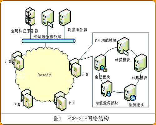 PN在地理上散布各處,邏輯上根據選用的P2P機制的不同可以是環(huán)形的(Chord協(xié)議)、矩陣的(CAN協(xié)議)、網狀的(Pastry協(xié)議和Tapestry協(xié)議)。基本的PN至少包括注冊和代理兩種功能。為進行商業(yè)運營,可以部署全局認證服務器、全局賬務服務器和網管服務器等等,用于管理全部的用戶和所有的PN。