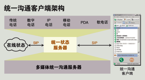 從MSN、QQ提供的語音聊天到曾經(jīng)風(fēng)靡一時的Skype,再到今天思科、北電、微軟、Avaya等推出的統(tǒng)一溝通桌面客戶端系統(tǒng),通信的“最后一公里”發(fā)生了根本的轉(zhuǎn)變。原來為了節(jié)省長途話費而設(shè)計的VoIP,今天和ERP、CRM一樣成為了以提高企業(yè)運營效率為目的的核心生產(chǎn)力系統(tǒng)。統(tǒng)一溝通最令人憧憬的未來是給最終用戶提供一個友好的通信界面:“所有的信息源匯總到一起,而用什么方式來取得這個信息,只要在手邊最方便的工具上輕輕點擊就OK了!