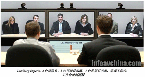 MXP信號(hào)編解碼器、4臺(tái)高分辨率攝像頭和3臺(tái)50英寸的等離子顯示器,用戶(hù)播放視頻內(nèi)容,1臺(tái)50英寸等離子顯示器安放在中央視頻顯示屏幕下方,顯示數(shù)據(jù)信息。同時(shí),Experia系統(tǒng)還包括了遠(yuǎn)程呈現(xiàn)控制臺(tái),為用戶(hù)提供了三種木制造型選擇,控制臺(tái)上的3臺(tái)麥克風(fēng)構(gòu)成了音頻系統(tǒng)。系統(tǒng)每通信站點(diǎn)支持6位與會(huì)者參與會(huì)議。與其它遠(yuǎn)程呈現(xiàn)系統(tǒng)一樣,Experia在聲音和圖像方面的性能非常出色,系統(tǒng)使用簡(jiǎn)單、穩(wěn)定可靠。泰德的遠(yuǎn)程呈現(xiàn)系統(tǒng)雖然采用與寶利通類(lèi)似的H.323/SIP標(biāo)準(zhǔn),在系統(tǒng)與業(yè)界標(biāo)準(zhǔn)的協(xié)同工作以及用戶(hù)之間互聯(lián)互通的性能方便似乎更勝一籌。