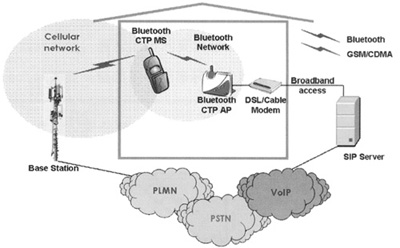 摘要 介紹了藍牙CTP(Cordless Telephony Profile)應用模型,并闡述它在FMC(Fixed Mobile Convergence)接入網中的應用:PSTN接入和VoIP接入。