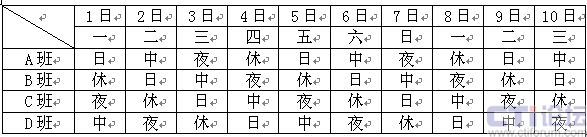 圖2 24小時(shí)四班三運(yùn)轉(zhuǎn)排班表1
