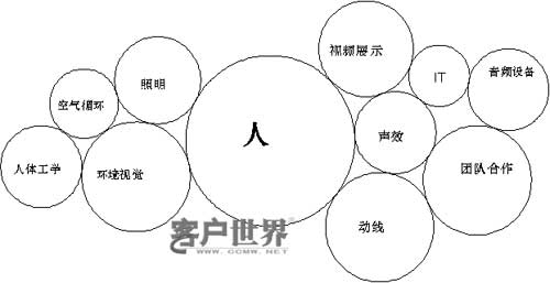 我們“以人為本”的出發(fā)點,相信能夠得到您的認同。但是空間中所包含的元素還是非常的復(fù)雜。即使在我們內(nèi)部編寫的《呼叫中心營建白皮書》中,就呼叫中心空間設(shè)計的要點一項,就有15個方面之多,相信以后隨著經(jīng)驗和需求的變化,還會有所增加。