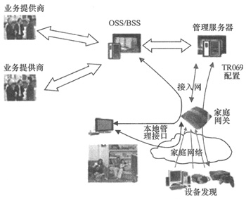 Forum的參考模型,加入了服務提供商,形成了服務提供商、BOSS、ACS、家庭網關、終端的整體管理架構(如圖3所示),并著重研究RMS/ACS與HG之間接口、HG與ED之間接口[6]。