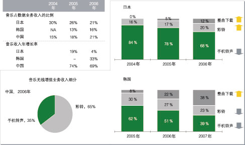圖3 無線音樂業(yè)務(wù)在日本、韓國和中國的發(fā)展情況