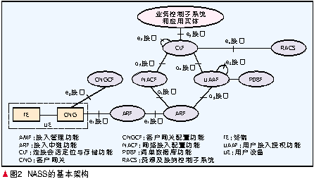 在圖2中,與NASS有互聯(lián)關(guān)系的外部實體包括同層的RACS、底層的ARF、上層的業(yè)務(wù)控制子系統(tǒng)和應(yīng)用實體。