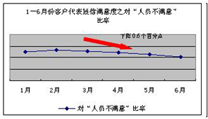 短信滿意度作為實時的客戶服務評價手段,“非常滿意”指標體現(xiàn)出在服務過程中一線客戶代表與客戶溝通的愉悅度、忠誠度。隨著“非常滿意”及“對人員不滿意”滿意度指標的改善,一定程度上說明一線客戶代表的服務狀態(tài)得到了有效的改善。