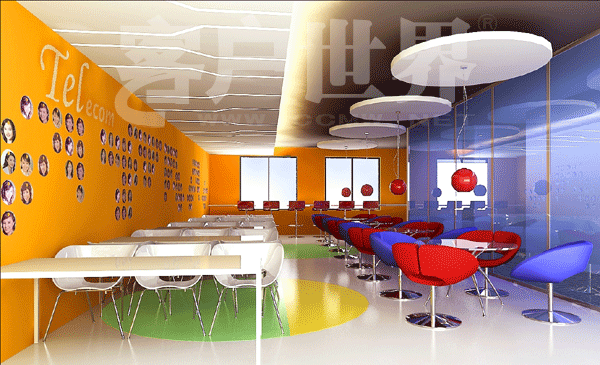 在這個(gè)環(huán)節(jié),我想和大家分享一些我們剛剛完成的設(shè)計(jì)圖片,可以更直觀的感受色彩在呼叫中心空間中的重要性。