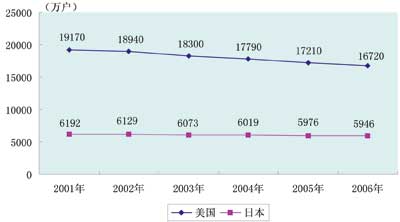 關于固定電話受沖擊的現象,美國比日本更加突出,這是因為美國大的通信公司除了提供電話、電視和高速上網捆綁服務外,基本上不提供IP電話(普通電話機經本地市話交換機以及網關進入因特網)和VoIP電話(普通電話機經電話連接器進入因特網)。美國衛(wèi)生統(tǒng)計中心公布的數據顯示,2007年下半年,美國只有移動電話而沒有固定電話的家庭比例達到15.8%,這一比例在2004年同期只有6.1%,大約2%的美國家庭沒有電話。