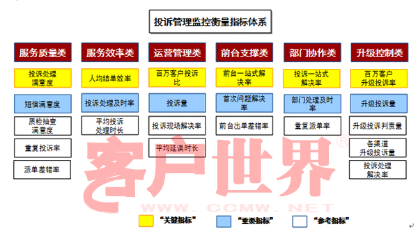 根據(jù)以上依據(jù)分析,收集影響投訴管理工作的各方面指標,再結(jié)合以上原則對所收集的指標進行篩選,即可設(shè)計出一套適合實際運營的投訴管理工作監(jiān)控衡量的指標體系。