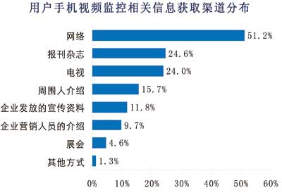 另一方面,運營商的宣傳不到位。從諾達(dá)咨詢調(diào)查數(shù)據(jù)來看,用戶目前獲得手機視頻監(jiān)控相關(guān)信息的主要渠道是互聯(lián)網(wǎng),有51%的用戶是通過互聯(lián)網(wǎng)了解手機視頻監(jiān)控的,而從傳統(tǒng)的電視媒體和報刊雜志獲得相關(guān)信息的用戶僅僅約各占24%,通過相關(guān)手機視頻監(jiān)控企業(yè)發(fā)放宣傳資料和介紹獲取相關(guān)信息的用戶各占12%和10%。由此可見,手機視頻監(jiān)控的宣傳尚不到位,導(dǎo)致消費者不能通過多方渠道獲取相關(guān)信息。