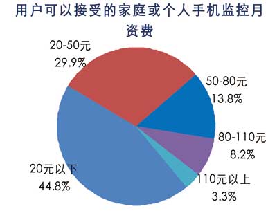 目前的資費標(biāo)準(zhǔn)與用戶20元以下的資費期望值存在很大差距,如果個人或家庭用戶的資費可以降低到20-50元,手機視頻監(jiān)控服務(wù)將可以被大多數(shù)用戶所接受。