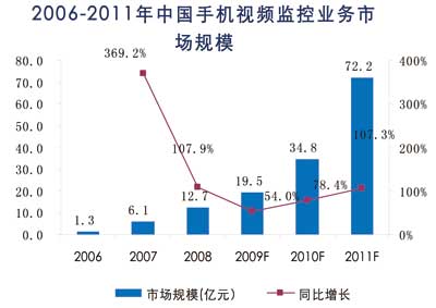 由此估算出2009年,中國手機監(jiān)控市場規(guī)模將達(dá)到19.5億元,2011年,中國手機監(jiān)控業(yè)務(wù)市場規(guī)模將達(dá)到72.2億元。