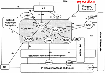 NGN中IMS子系統(tǒng)和3GPP中IMS子系統(tǒng)之間的差異和需要擴展的功能實體主要有: