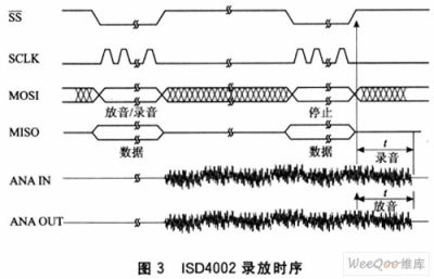 器件便從00地址開始錄音,一直到出現(xiàn)OVF(存儲器末尾)時(shí),錄音停止。其工作時(shí)序如圖3所示。