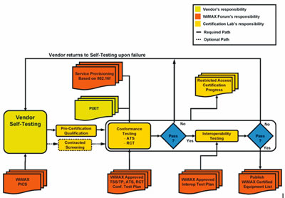 - 通過實(shí)驗(yàn)室的一致性認(rèn)證之后,按照WiMAX認(rèn)可的互操作測試計(jì)劃,該設(shè)備將繼續(xù)在實(shí)驗(yàn)室進(jìn)行與其他廠家的設(shè)備(至少3家)互通操作測試,通過互操作測試的設(shè)備就可以得到“WiMAX®CERTIFIED”標(biāo)識(shí)。