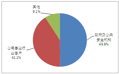 從細(xì)分市場來看,政府及公共安全機(jī)構(gòu)為最大的細(xì)分市場,占總市場規(guī)模的49.8%,而且比重仍有上升趨勢,公用事業(yè)行業(yè)客戶市場占比41.1%,其他客戶占9.1%。