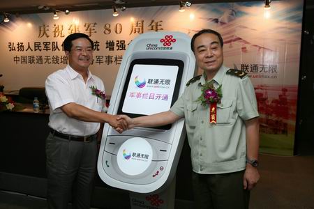 7月25日下午,中國(guó)聯(lián)通與解放軍總政治部宣傳部、解放軍報(bào)社等重要媒體共同宣布,將正式開(kāi)通無(wú)線(xiàn)增值業(yè)務(wù)軍事欄目,將為聯(lián)通1.5億用戶(hù)提供軍事資訊服務(wù)。