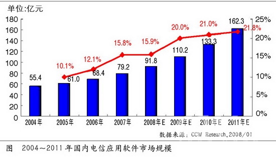 從計(jì)世資訊相關(guān)報(bào)告來看,2008年電信應(yīng)用軟件市場(chǎng)將出現(xiàn)以下特點(diǎn):