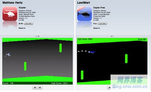 iCopter ,那么你也會(huì)喜歡免費(fèi)的 Copter ! 甚至還有與之對(duì)應(yīng)的另一種情況,開發(fā)者抄襲一個(gè)免費(fèi)應(yīng)用,然后把它做成付費(fèi)版——
