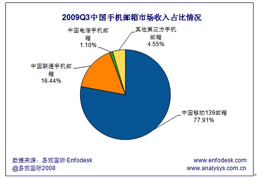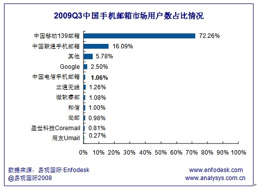 易觀:中移動139郵箱領跑2009Q3手機郵箱市場