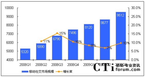 2009年三季度中移動(dòng)社交業(yè)務(wù)市場(chǎng)規(guī)模超過(guò)9000萬(wàn)元