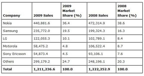 根據(jù)Gartner的數(shù)據(jù)顯示,去年共銷售出的智能手機(jī)達(dá)1.72億部,比前年上漲了24%,然而全世界手機(jī)的銷售總量卻并無起色(2008年為12.2億部,而2009年為12.1億部。在去年銷售的所有手機(jī)中,智能手機(jī)占14%,較2008(11%)年有所提升。iPhone盡管去年漲勢(shì)迅猛,只占去年各種手機(jī)銷售總量的2%。