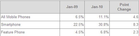 市場調研機構comScore最新公布的一項數據顯示,越來越多的用戶開始用手機來訪問社交網絡,特別是智能手機用戶。在2010年一月,有30.8%的智能手機用戶用手機訪問了社交網絡。