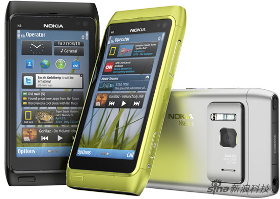 北京時間4月27日下午消息,諾基亞今天發(fā)布第一款采用Symbian^3操作系統(tǒng)手機“諾基亞N8”。諾基亞N8擁有鋁制外殼和五款顏色。稅前和不包含補貼的價格是370歐元,預計將于第三季度發(fā)售。