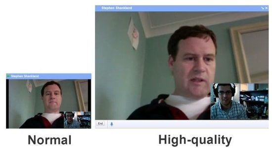 這個圖片顯示了以前和現(xiàn)在的視頻聊天窗口的對比。左邊是Gmail中老式的標準視頻聊天窗口。右邊是新的、高質(zhì)量的視頻聊天窗口,對于寬屏顯示屏是非常合適的。