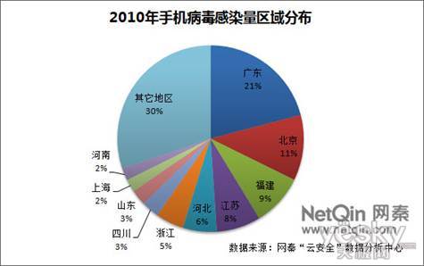 圖:我國廣東以21%的手機(jī)病毒感染量位居全國首位