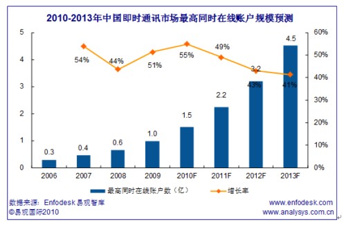 2013年中國(guó)IM市場(chǎng)最高同時(shí)在線賬戶規(guī)模將突破4億