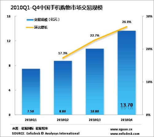 2010年中國手機購物市場規(guī)模達41億元