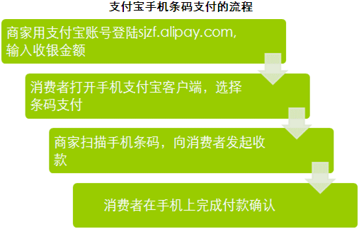 、 支付成本低。不同于不斷上漲的刷卡成本,支付寶手機(jī)條碼支付只需一臺(tái)可上網(wǎng)筆記本以及一只支付寶免費(fèi)提供的掃描槍(或一部可上網(wǎng)的智能手機(jī))即可完成交易。
