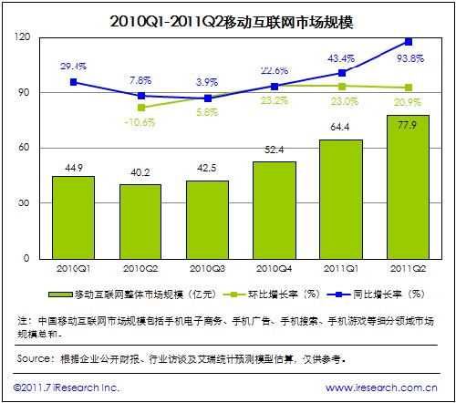 2011Q2中國移動(dòng)互聯(lián)網(wǎng)市場(chǎng)規(guī)模達(dá)77.9億元