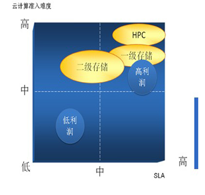 從企業(yè)戰(zhàn)略咨詢分析師的角度,我認(rèn)為IBM的戰(zhàn)略布局和資源整合策略確實(shí)是IT領(lǐng)域戰(zhàn)略規(guī)劃很好的教科書(起碼對(duì)于我個(gè)人而言)。精準(zhǔn)的定位市場、以具有明顯技術(shù)細(xì)分優(yōu)勢的產(chǎn)品或服務(wù)切入市場、設(shè)定較高的技術(shù)準(zhǔn)入門檻,這些戰(zhàn)略舉措不僅有助于IBM快速占領(lǐng)新生市場戰(zhàn)略制高點(diǎn),同時(shí)保證了其可持續(xù)競爭優(yōu)勢和利潤空間。從下面的云計(jì)算準(zhǔn)入/云服務(wù)SLA象限圖上,當(dāng)很多廠商還在考慮“哪塊云彩有雨”時(shí),IBM已經(jīng)完成在云端提供HPC和高增值二級(jí)存儲(chǔ)服務(wù)的布局,掌控了利潤最豐厚的云計(jì)算高端市場。從我個(gè)人的預(yù)測,IBM在云端提供一級(jí)存儲(chǔ)服務(wù),應(yīng)該是其云計(jì)算高端戰(zhàn)略的下一個(gè)布局。